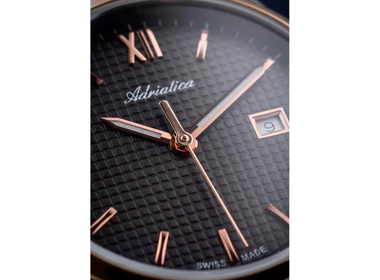 Adriatica A3190.R166Q – классическая швейцарская модель с элегантным дизайном, которая подойдет на любую женскую руку. Кварцевый механизм работает от батарейки. Он надежен, точен и не требует дополнительных настроек. Модель имеет круглый корпус серебристого цвета из нержавеющей стали диаметром 33 мм и толщиной 8 мм. Стекло в часах сапфировое, оно не царапается и является самым крепким стеклом в часовой индустрии. На текстурном циферблате черного цвета графитового разместились название бренда, стрелки и метки золотистого цвета. Стрелки светятся во тьме, что очень удобно для того, чтобы следить за временем в темное время суток. Дополняет дизайн часов эффектный биколорный браслет из нержавеющей стали, он приятен на ощупь, крепкий и надежно удерживает этот стильный аксессуар на вашей руке. Водозащита модели составляет 50м, то есть она выдержит кратковременные и непродолжительные контакты с водой – дождь, умывание, душ. Adriatica A3190.R166Q – классическая и эффектная женская модель, которая подчеркнет ваш уникальный стиль и отлично дополнит индивидуальный образ. Эта модель идеально сочетает швейцарское качество и элегантность, которая радует вас каждый день.