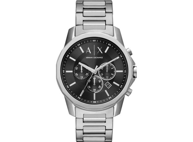 Мы рады представить вам мужские наручные фешн часы бренда Armani Exchange AX1720, выполненные в традиционном дизайнерском стиле. Следует отметить, что корпус часов и браслет изготовлены по новейшей технологии из стойкой к износу нержавеющей стали. Модель представлена во всем благородном тандеме серебра и черного, которое привнесет в ваше сознание ощущение аристократизма и элегантности. Корпус часов-хронографа выполнен в форме круга. Циферблат глубокого черного цвета. Индексы и стрелки серебристого цвета. Логотип бренда нанесен на верхнюю часть циферблата, на уровень 12 часов. Окно даты расположено между 4 и 5 часами. Закаленное минеральное стекло защитит ваши часы от царапин и повреждений. Браслет, состоящий звеньев разной величины, крепится к корпусу прочно и подвижно. Замок раскладной. Кварцевый механизм, заряжающийся от батарейки, порадует вас точностью показываемого времени и прекрасной работой. Ширина корпуса часов 44мм, водонепроницаемость 50м. Часы этой модели станут вашим наилучшим выбором.