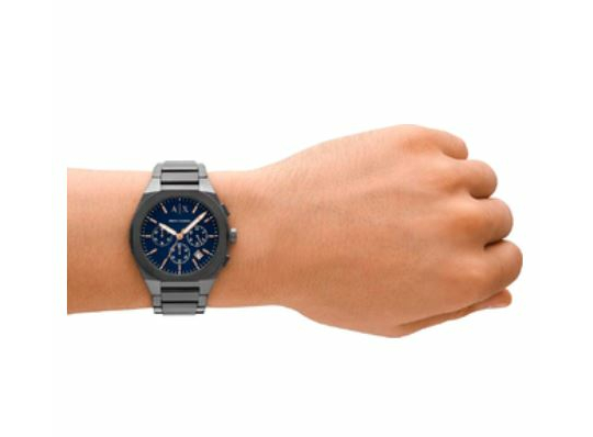 Armani Exchange Rafael AX4182 - это превосходный выбор для мужчин, которые ценят стиль, качество и практичность. Корпус серый изготовлен из нержавеющей стали, диаметром 42мм.Циферблат синий с акцентами в виде стрелок и маркеров в золотистом цвете.Три дополнительных субциферблата, которые отвечают за функции хронографа (секунды, минуты и часы).Окно индикации даты расположено на позиции между «4 часа» и «5 часов». Логотип Armani Exchange гармонично дополняет общий дизайн.Металлический браслет серого цвета, прочный и устойчивый к царапинам.Удобная застежка раскладушка обеспечивает комфорт и надежность.Хронограф позволяет измерять промежутки времени с секундной точностью.Оснащен кварцевым механизмом, который обеспечивает надежную и стабильную работу.Хронограф позволяет измерять промежутки времени с секундной точностью.Оснащен кварцевым механизмом, который обеспечивает надежную и стабильную работу. Водозащита 50 м, выдерживает дождь и мытье рук, но не подходит для плавания.