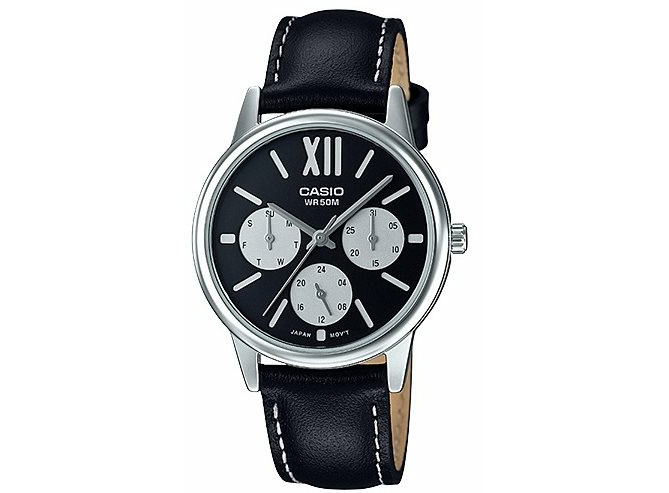 На чёрном циферблате помимо стрелок и меток есть дополнительные циферблатики небольшого размера в них отображается дата, день недели и время в формате 24 часа. С часами CASIO LTP-E312L-1BVDF Вы всегда будете на высоте, они помогут завершить создаваемый образ и станут любимым аксессуаром Вашего гардероба.
