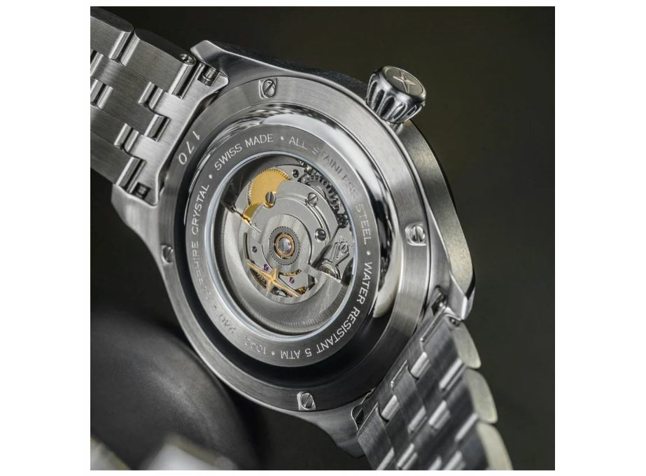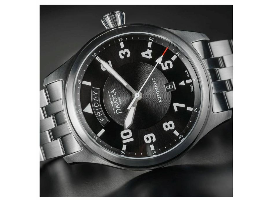 Мужские механические часы с автоподзаводом. Davosa Newton Pilot Day-Date Automatic 161.585.50 - стильный современный аксессуар, отлично сочетающийся с разными стилями одежды. Оснащены калибром DAV 3023, 25 камней, 28800 полукалебаний в час, запас хода 41 часов. Корпус данной модели изготовлен из высококачественной стали. Диаметр 44 мм. Классический стальной браслет с роскладной застежкой идеально сочетается с циферблатом и стрелками. На цифербрате расположены дата и день недели. Стекло сапфировое, с антибликом, оно не царапается и всегда остаётся как новое. Достаточно крупные стрелки и метки с покрытием SuperLumiNova, хорошо читабельны и светятся в тёмное время суток. Водозащита 50 метров.