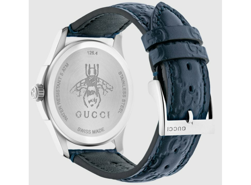 Gucci G-Timeless Blue Leather Watch YA1264032. Эта красивая модель G-timeless имеет синий логотип GG с корпусом из нержавеющей стали 38 мм.