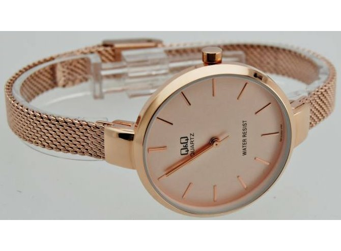 Корпус крепится с помощью тонкого браслета акцентируя все внимание на цифеблате. Браслет из нержавеющей стали выполненом миланским плетением. Круглая форма корпуса выполнена из латуни, а задняя крышка из нержавеющей стали. Вся конструкция покрыта ipg покрытием розового цвета. Эти модели выполнены в разных вариациях покрытий, благодаря которым вы сможете подобрать подходящий аксессуар именно вам. Работу стрелок обеспечивает точный механизм японского производства. Водозащита не позволит купаться в часах.