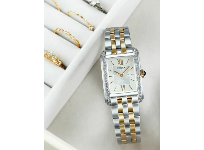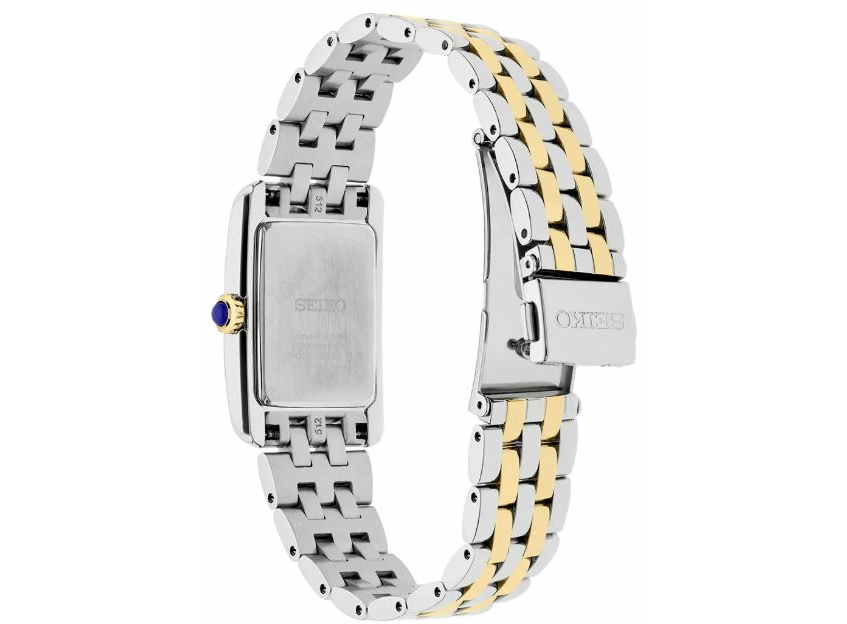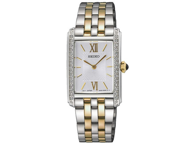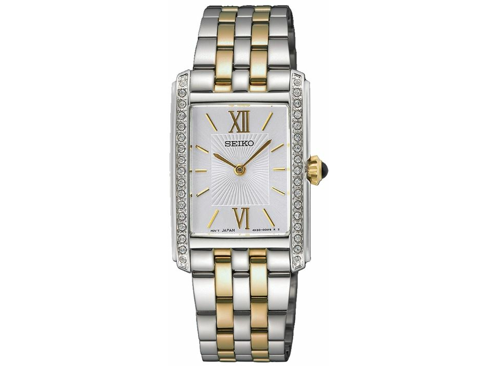 Благодаря качеству изготовления и дизайну часы Seiko SWR093P1 подходят как для компании, так и для повседневного ношения. Прямоугольный корпус часов выполнен из нержавеющей стали обрамлен 34 кристалами, дополнен простым браслетом из звеньев из того же материала. Покупателей впечатлит декоративный циферблат с тонкой вафельной структурой. Циферблат удачно дополняют изящные стрелки и индексы на часовых позициях. Затем он защищен закаленным минеральным кристаллом Hardlex. Общее впечатление от часов также завершают накладные часовые метки и изящные стрелки. Часы оснащены высококачественным механизмом Seiko 4N30 с батарейным питанием. Водонепроницаемость модели составляет 30 м. Корпус диаметром 22 x 33 мм идеально подходит для большинства женских запястий.