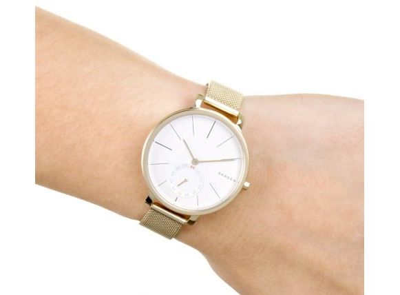 Женские наручные часы Skagen SKW2436 представлены в классической круглой форме корпуса на стальном браслете. Корпус выполнен из нержавеющей стали под цвет лимонного золота.Браслет выполнен из нержавеющей стали, он удобно ложится на руку и вызывает комфортные ощущения при носке, а мелкое плетение выглядит очень стильно и дорого.