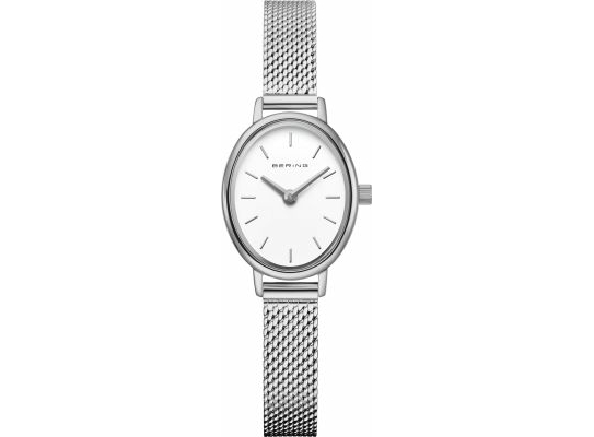 Bering Classic 11020-004 — елегантний жіночий годинник у витонченому класичному стилі. Овальний сріблястий корпус із полірованої нержавної сталі та сніжно-білий циферблат створюють стриманий і вишуканий образ. Сріблястий міланський браслет ідеально лягає на зап’ястя, даруючи комфорт і легкість у щоденному носінні. Пласке сапфірове скло стійке до подряпин, а кварцовий механізм гарантує точність. Водозахист 3 ATM робить цю модель практичною у повсякденному житті. Стильна, надійна й універсальна — для тих, хто цінує класику з сучасним характером.