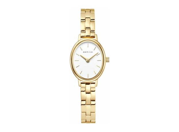 Bering Classic 11020-734 — елегантний жіночий годинник, що поєднує класику та розкіш. Овальний корпус із нержавної сталі у золотистому відтінку (діаметр 20 мм, товщина 6 мм) виглядає гармонійно з білим циферблатом, що підкреслює витончену простоту. Сталевий браслет забезпечує комфорт та елегантний вигляд. Пласке сапфірове скло стійке до подряпин, а кварцовий механізм гарантує точний хід. Водозахист 3 ATM робить годинник не тільки стильним, але й практичним для повсякденного носіння. Ідеальний вибір для тих, хто шукає сучасну класику з витонченим характером.