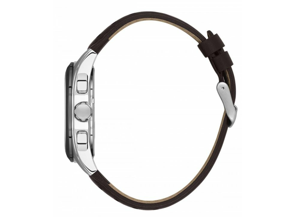 Корпус латунний з покриттям ,круглої форми діаметром 42 мм,помірно масивний дизайн без агресивних елементів. Циферблат сірий із трьома субциферблатами , сріблясті мітки і стрілки з люмінесцентним покриттям добре видно в темряві. Захищений мінеральним склом, яке стійке до подряпин у повсякденному використанні, бюджетна альтернатива сапфіру. Механізм кварцевий на батарейці. Ремінець шкіряний чорного кольору, з класичною застібкою. Водозахист 50 м , підходить для щоденного використання, миття рук, дощу. Не рекомендовано для купання або плавання.