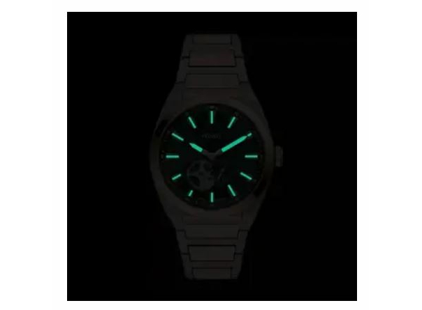 Особливість моделі — двокольорове забарвлення (Rose Gold/Silver), де елементи корпусу та браслета виконані в кольорі рожевого золота. Циферблат чорний, із ефектом сонячного сяйва . "Відкрите серце" на циферблаті є прозоре віконце, що дозволяє спостерігати за роботою механізму, що є головною візуальною "родзинкою" цієї моделі. Захищений мінеральним склом, забезпечує хороший захист і чіткість.Браслет з нержавіючої сталі двокольорового забарвлення (срібло + рожеве золото) — браслет має інтегрований дизайн, натхненний стилем 70-х, що забезпечує безшовний перехід від корпусу і підвищує комфорт. Застібка ,одинарна розкладна пряжка. Водозахист 50 м , підходить для щоденного використання та невеликого потрапляння води (миття рук, дощ), але не рекомендується для плавання.