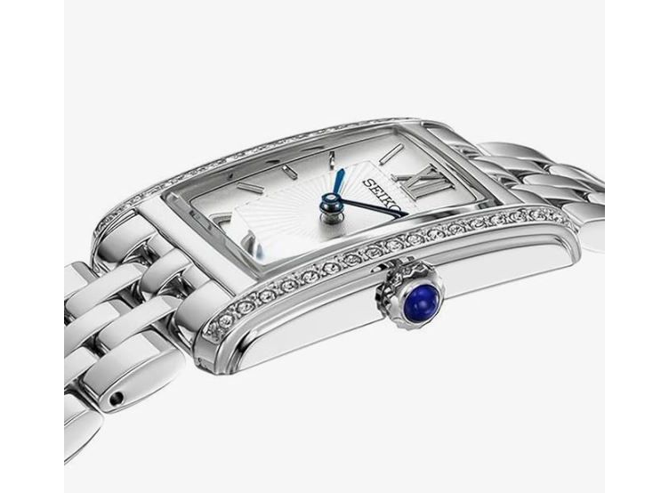 Завдяки якості виготовлення та дизайну годинник Seiko SWR091P1 підходить як для компанії, так і для повсякденного носіння. Прямокутний корпус годинника виконаний з нержавіючої сталі, доповнений простим браслетом з ланок з того ж матеріалу. Покупців вразить декоративний циферблат із тонкою вафельною структурою. Циферблат вдало доповнюють витончені стрілки та індекси на годинникових позиціях. Потім він захищений загартованим мінеральним кристалом Hardlex. Загальне враження від годинника також завершують накладні годинникові мітки та витончені стрілки. Годинник оснащений високоякісним механізмом Seiko 4N30 з батарейним живленням. Водонепроникність моделі становить 30 м. Корпус діаметром 23 x 33 мм ідеально підходить для більшості жіночих зап'ясть.