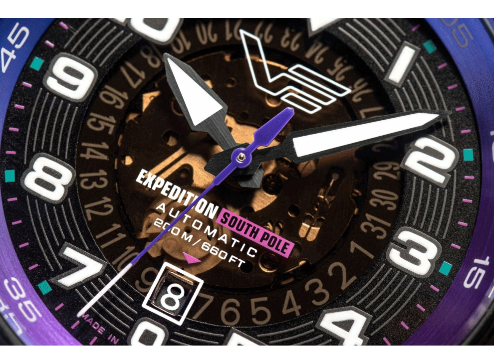 Водонепроницаемость автоматических часов Vostok Europe Expedition South Pole Automatic Line NH35/592A760 установлена на уровне 20 АТМ и поддерживается завинчивающейся заводной головкой.